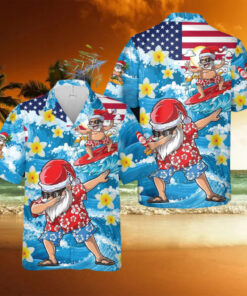 Tmas In July Dabbing Santa Surfing Beach Summer Funny Hawaiian Shirt Ideas Gift