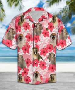 Tropical Flowers Hibiscus Monkey Hawaiian Shirt Summer Button Up – Hot Sale 2024