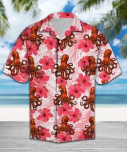 Tropical Flowers Hibiscus Octopus Hawaiian Shirt Summer Button Up – Hot Sale 2024