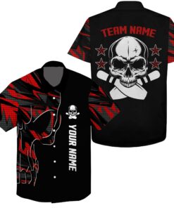 Bowling Custom Name And Team Name Hawaiian Shirt, Red Skull Bowling Personalized Hawaiian Shirts For Men Women, Team, Bowling Lovers, Bowlers