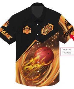 Bowling Hawaiian Shirt Custom Name – Bowling Strike Hit Fire Explosion Concept Personalized Aloha Hawaiian Shirt – Gift For Friend, Family, Bowling Lovers