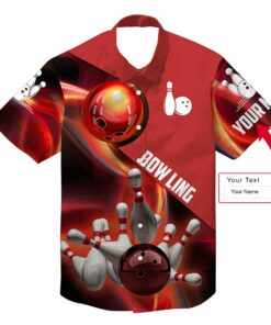 Bowling Custom Name Hawaiian Shirt, Red Flame Bowling Balls And Pins Personalized Hawaiian Shirts For Men Women, Bowling Lovers, Team, Bowlers