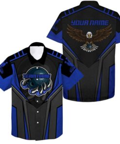 Bowling Eagle Custom Name And Team Name Hawaiian Shirt, Blue Black Bowling Personalized Hawaiian Shirts For Men Women, Team, Bowling Lovers, Bowlers