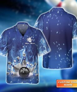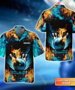 Bowling Hawaiian Shirt Custom Name – Bowling On Blue Fire Personalized Aloha Hawaiian Shirt – Gift For Friend, Family, Bowling Lovers
