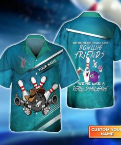 Bowling Hawaiian Shirt Custom Name – Bowling Friends We’re Like A Smallgang Personalized Aloha Hawaiian Shirt – Gift For Friend, Family, Bowling Lovers