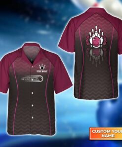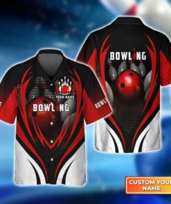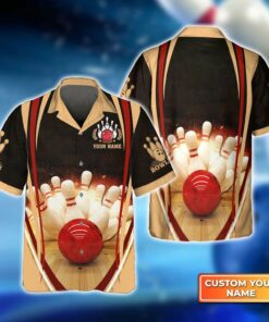 Bowling Hawaiian Shirt Custom Name – Bowling With Red Ball And Bowl Pins Personalized Aloha Hawaiian Shirt – Gift For Friend, Family, Bowling Lovers