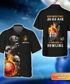 Bowling Hawaiian Shirt Custom Name – Bowling Skull Never Underestimate Personalized Aloha Hawaiian Shirt – Gift For Friend, Family, Bowling Lovers