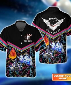Bowling Custom Name Hawaiian Shirt, Bowling Ball And Pins Personalized Hawaiian Shirts For Men Women, Bowling Lovers, Team, Bowlers
