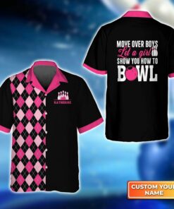 Bowling Hawaiian Shirt Custom Name – Move Over Boys Let A Girl Show You How To Bowl Personalized Aloha Hawaiian Shirt – Gift For Friend, Family, Bowling Lovers