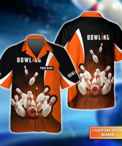 Bowling Hawaiian Shirt Custom Name – Perfect Orange Strike Bowling Personalized Aloha Hawaiian Shirt – Gift For Friend, Family, Bowling Lovers