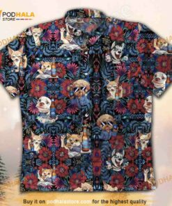 Bud Light Hawaiian Shirt Funny Dogs Drinking Beer In Flowers Bush