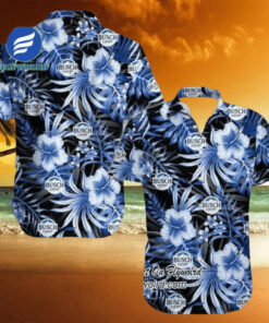 Bud Light Hibiscus Flowers Button Hawaiian Shirt