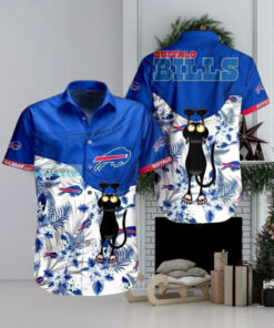 Buffalo Bills Floral Black Cat Hawaiian Shirt
