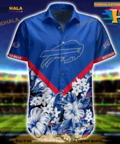 Buffalo Bills Hawaiian Shirt, Blue Tropical Flowers, Unique Hawaiian Shirt