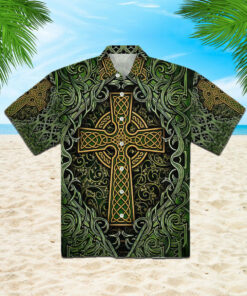 Amazing Celtic Cross St Patrick Green Patricksday Gifts Aloha Hawaiian Shirts