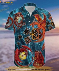 Amazing Lucky Dragon Playing Dice Blue Hawaiian Shirt