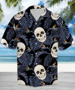 Amazing Skull And Tropical Leaves Hawaiian Shirt Summer Button Up – Hot Sale 2024