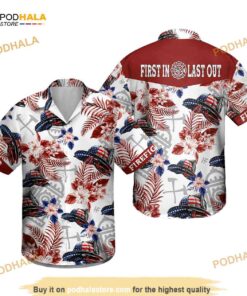 American Firefighter Helmet Red Flower Hawaiian Shirt