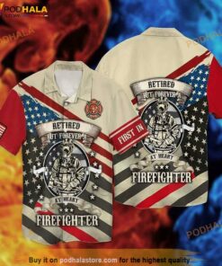 American Flag Retired Firefighter Retired But Forver A At Heart Firefighter Hawaiian Shirt
