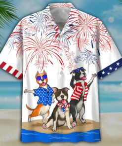 American Staffordshire Terrier Aloha Hawaiian Shirts For Summer, Independence Day Pride Happy 4th Of July Hawaiian Shirt For Men Women, Dog Lovers