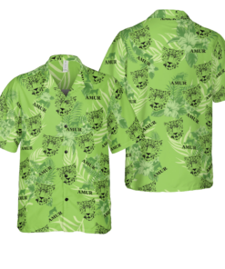 Amur Leopard Aloha Hawaiian Shirt For Summer, Amur Leopard Hibiscus Pattern Green Hawaiian Shirt For Men Women, Gift For Friend, Family, Team